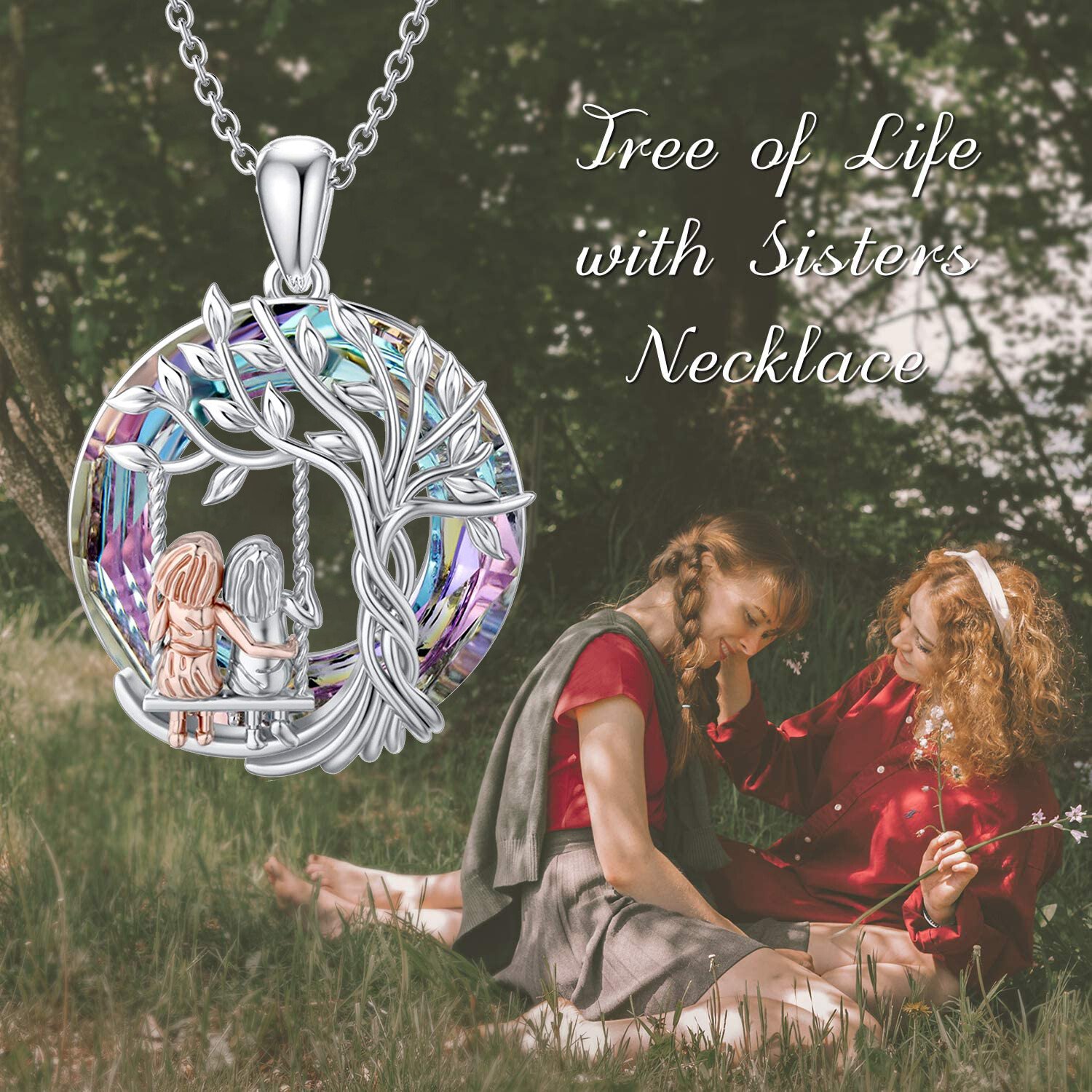 ♥Sister Necklace Size ♥ Pendant size 0.92*0.81 inch. Purple circle crystal size: 20*20mm/0.78*0.78in, with 18+2 inch rolo chains.